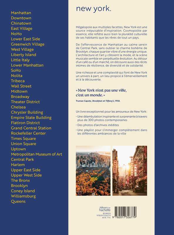 Un livre spectaculaire dédié aux amoureux du voyage. À travers près de 300 photos triées sur le volet, ce beau livre d’inspiration met en avant l’essence de New York : son architecture, ses paysages, sa culture, sa gastronomie, ses habitants et ses traditions.