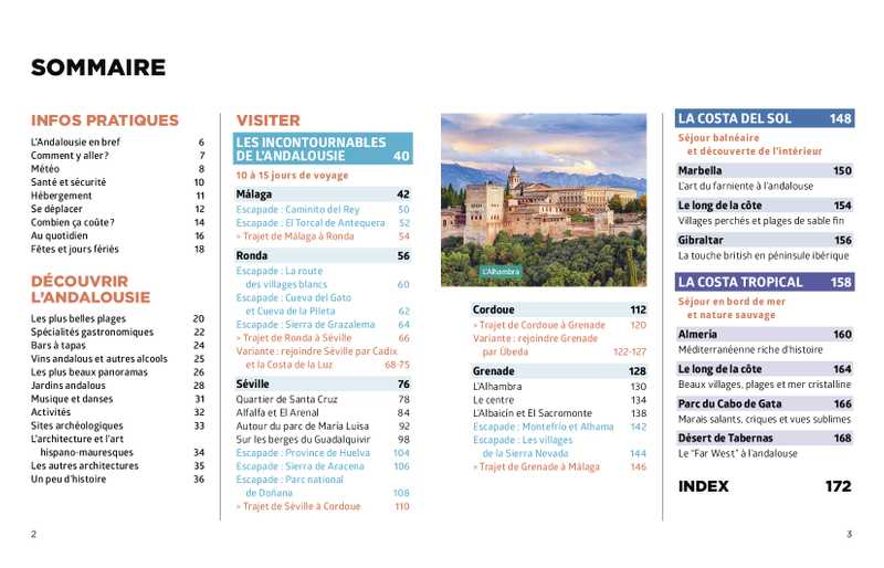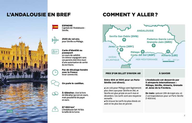 - 1 circuit détaillé étape par étape : Les incontournables de l’Andalousie (Séville, Grenade et Cordoue) et 2 zones de découverte balnéaire à Marbella et Almeria pour profiter de la Costa del Sol.