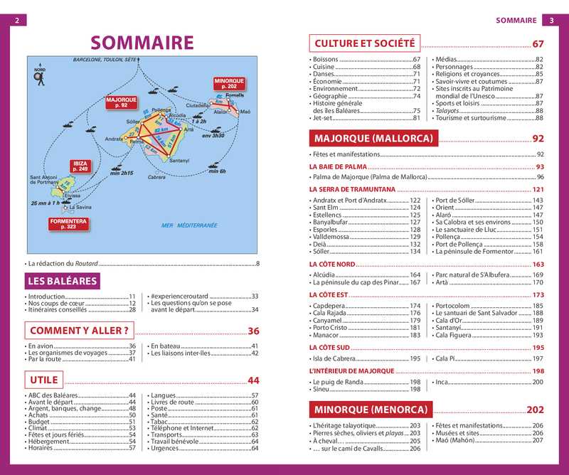 - Une première partie en couleurs pour découvrir les îles Baléares à l’aide de photos et de cartes illustrant les coups de cœur de nos auteurs ;