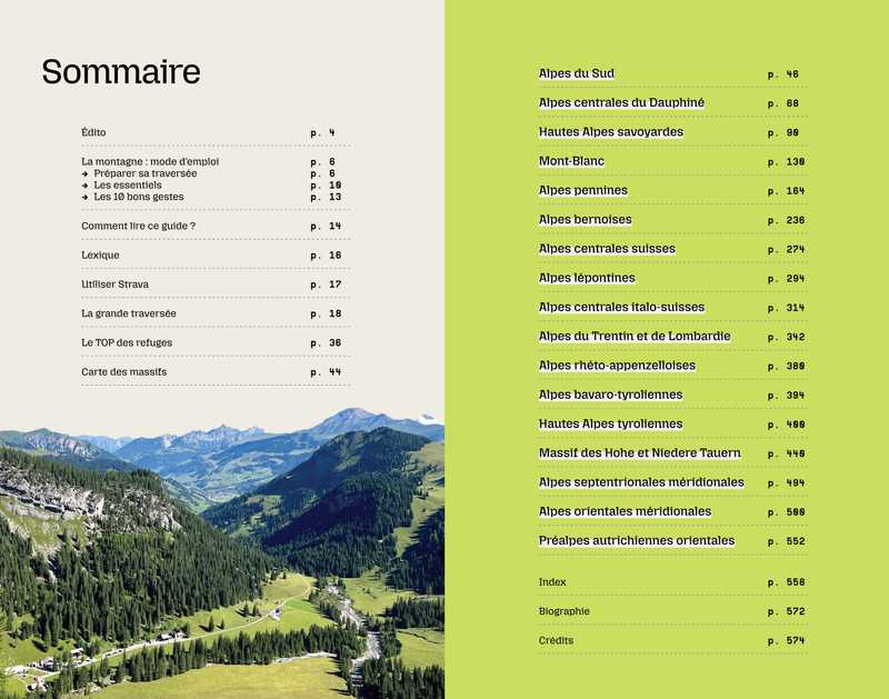 - 800 refuges au-dessus des 2 000 m d'altitude recensés sur des cartes, avec une présentation détaillée pour les 400 plus hauts d'entre eux.